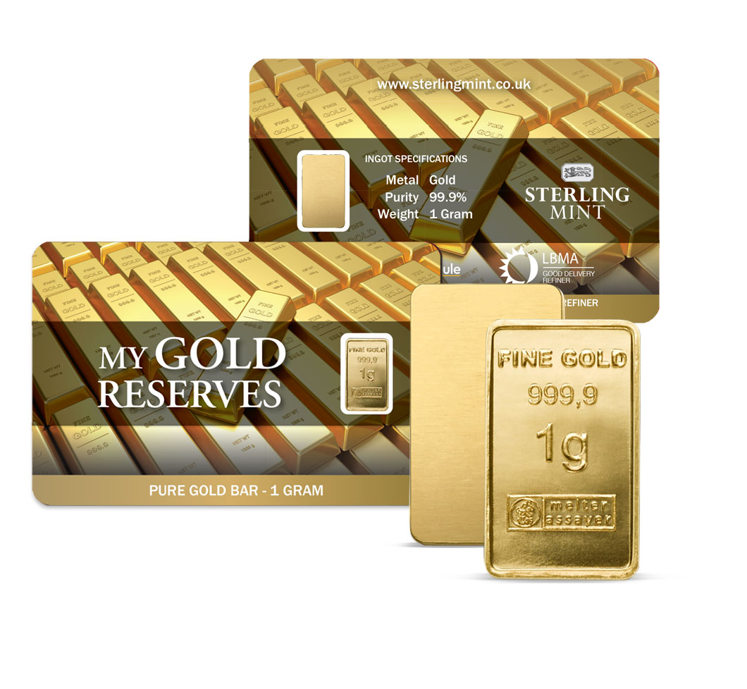 These convenient bullion cards each contain a 1 gram bar of 24 carat gold.